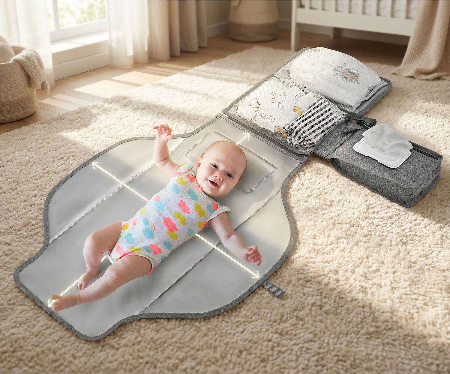 Say goodbye to trade-offs. With its intelligently partitioned inner pocket, this changing pad comfortably holds 4 diapers and 4 changes of baby outfits—enough for a full day out. Never be caught unprepared again.