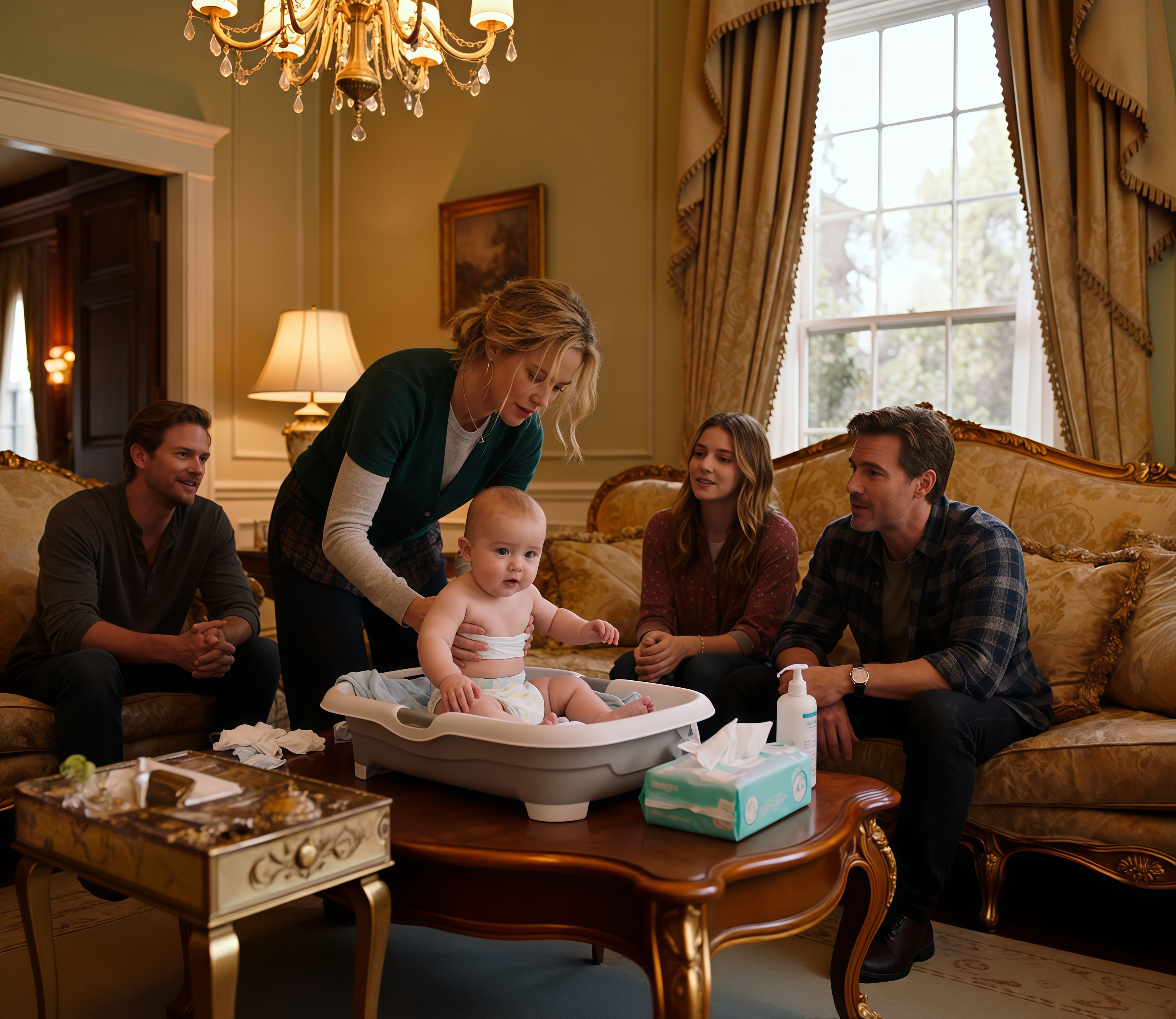 Baby in need of cleaning, and we find ourselves nowhere to do it.